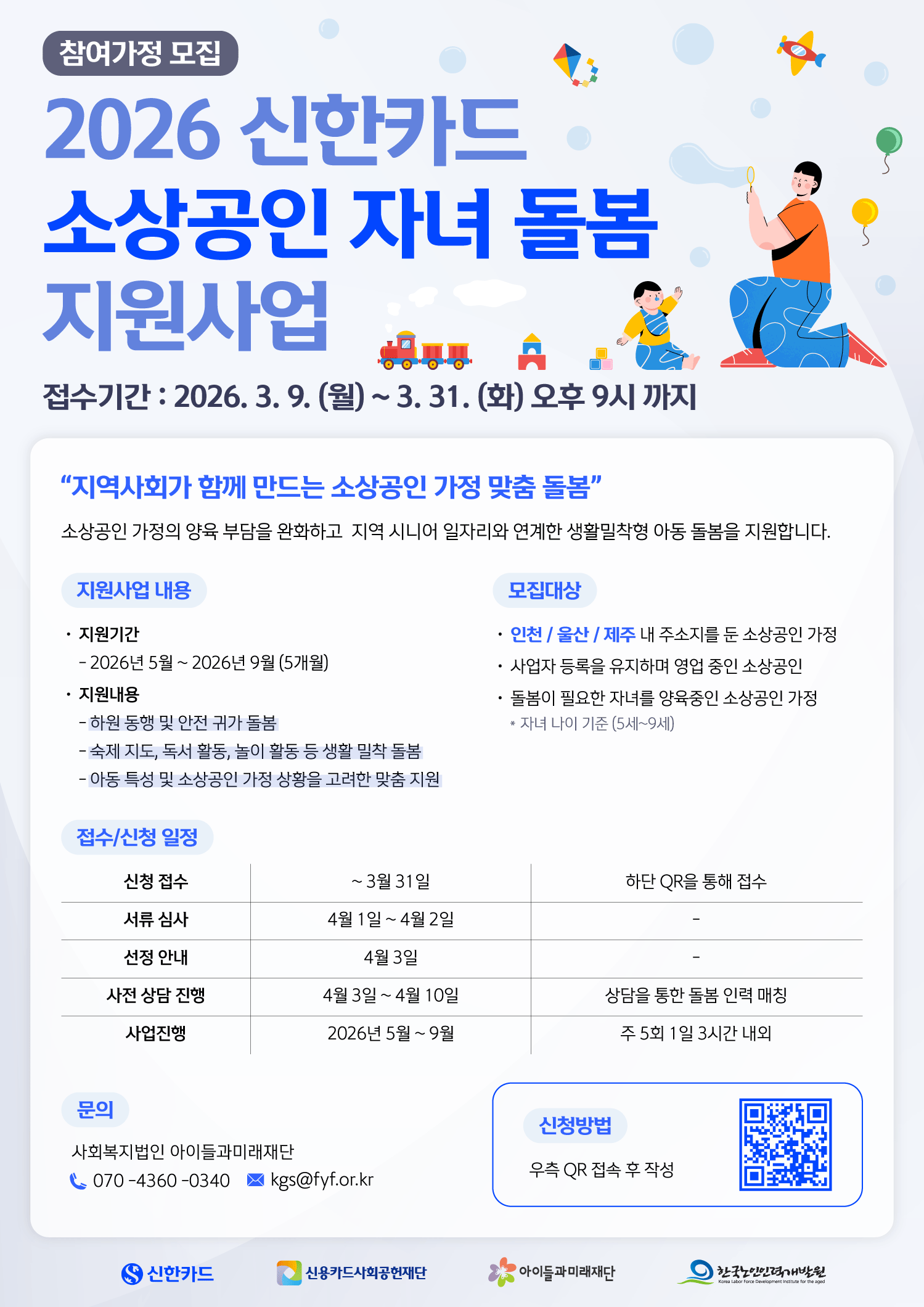 [¾ÆÀ̵é°ú¹Ì·¡Àç´Ü] 2026 ½ÅÇÑÄ«µå ¼Ò»ó°øÀÎ ÀÚ³à µ¹º½ Áö¿ø»ç¾÷ ¾È³»ÀÔ´Ï´Ù