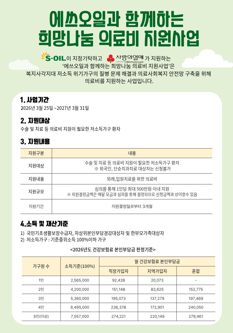 ´ëÇÑÀÇ·á»çȸº¹Áö»çÇùȸ¿¡¼´Â ¿¡¾²¿ÀÀϰú ÇÔ²²ÇÏ´Â Èñ¸Á³ª´® ÀÇ·áºñ Áö¿ø»ç¾÷À» ÁøÇà