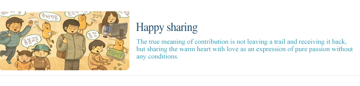 You may reflect ¡®Banner of Foundation of Love¡¯ on your personal blog or corporate website or organizations. As individuals and businesses, you may ultimately improve your self-esteem by improving reliability, attention to image by letting others know that you participate in such sharing actions. To make an additional remark by leading and enabling the sharing culture as a solid supporter spreads happy virus widely.