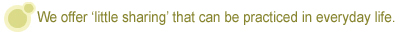 We cannot completely change the whole world with our small efforts, but sharing you may have thought small can become valuable dream and hopes to others. Person who practiced sharing and the people who received share happiness together and thereby it¡¯s sympathetic and helps more people to participate. It seems like I am contributing what I have, but gaining greater happiness, that is the ¡®Power of the Contribution¡¯.